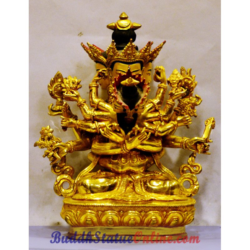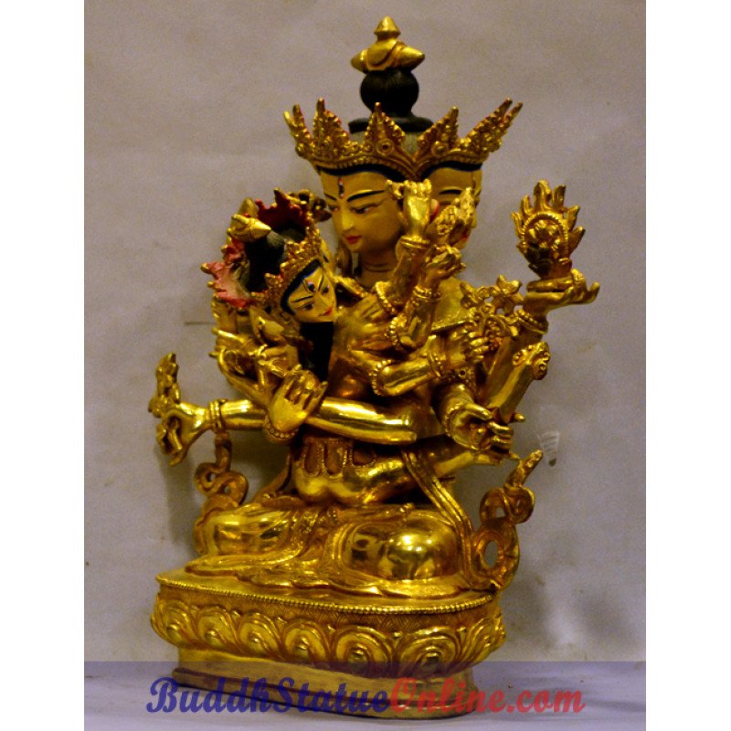 This is an exclusive quality Guhyasamaja statue, a protector deity in Full Gold Finishing.